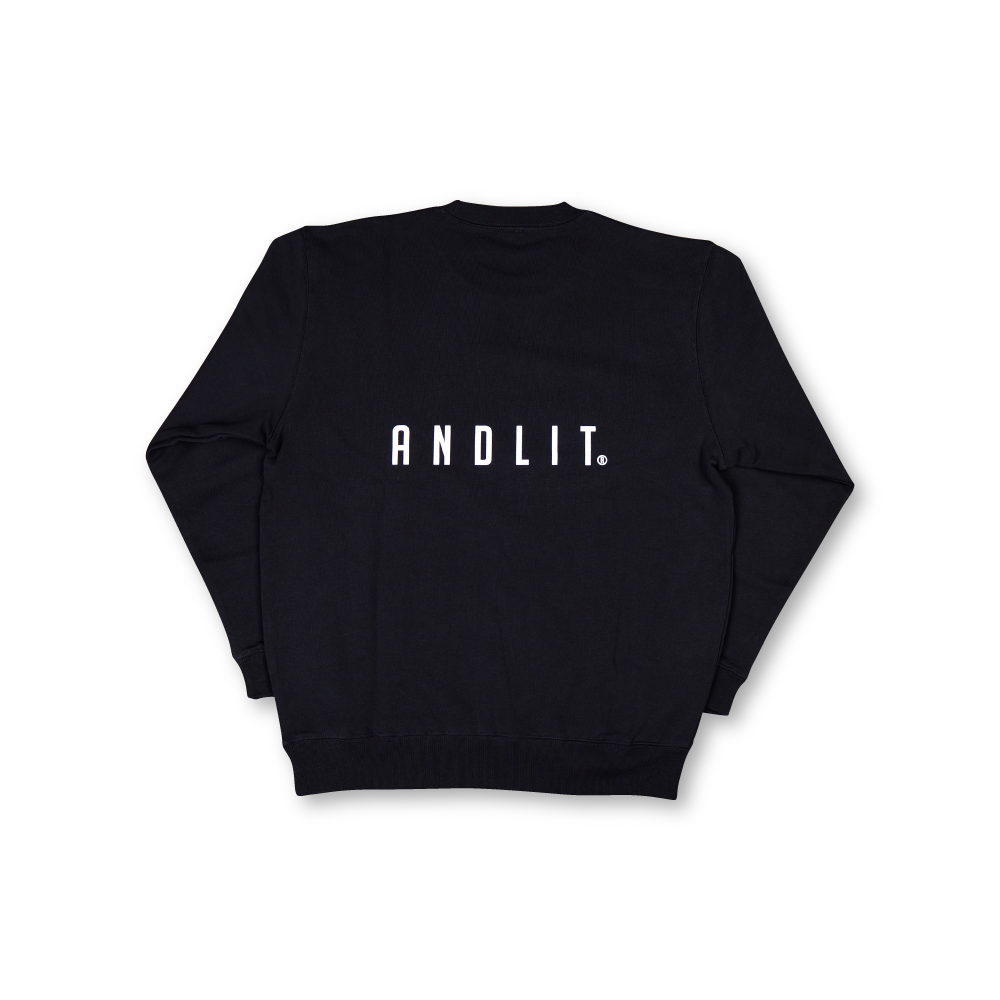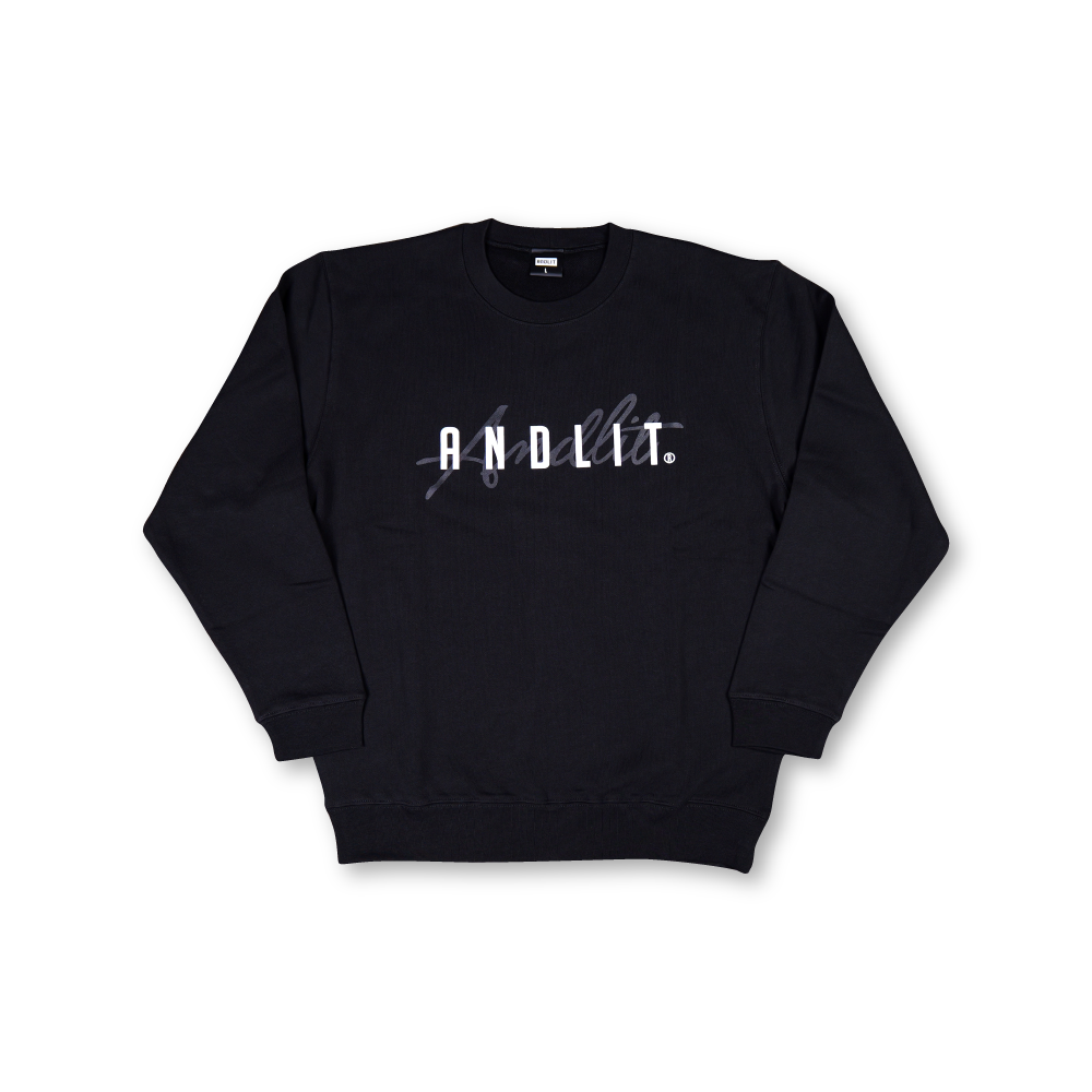 Design:フロントにはスクリプト&レギュラーフォントでANDLITロゴをレイアウト。背面中央にはANDLITロゴをレイアウトしたスウェットトレーナー。